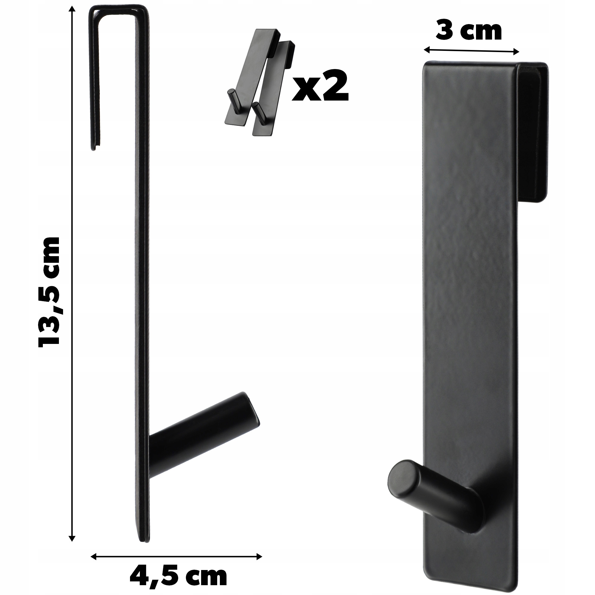 Haczyki na ubrania na drzwi występują w 2 wariantach rozmiarowych – wystarczy, że doprecyzujesz potrzeby swoje lub domowników, by móc wybrać model idealny. Mniejsza z propozycji, wyposażona w jeden wieszaczek, ma wymiary rzędu 4 x 3 x 13,5 centymetra, a opcja z dwoma haczykami – 5,5 x 3 x 17,6 centymetra (co istotne, obie opcje możesz zakupić w zestawie liczącym 2 sztuki). Niezależnie od tego, na którą wersję się zdecydujesz, każda z nich utrzyma obciążenie do maksymalnie 2 kilogramów.