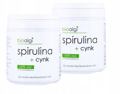 2x Spirulina + Cynk bioalgi 250 tabletek