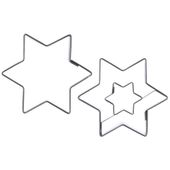 PRAKTYCZNE - Zestaw dwóch wykrawaczy cukierniczych w kształcie gwiazdy. Idealne do przygotowania ciasteczek i pierników. Wykrawacze mają wymiary 4,5 x 4,5 x 1,5 cm.