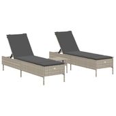 3-częściowy zestaw leżaków z poduszkami, jasnoszary polirattan