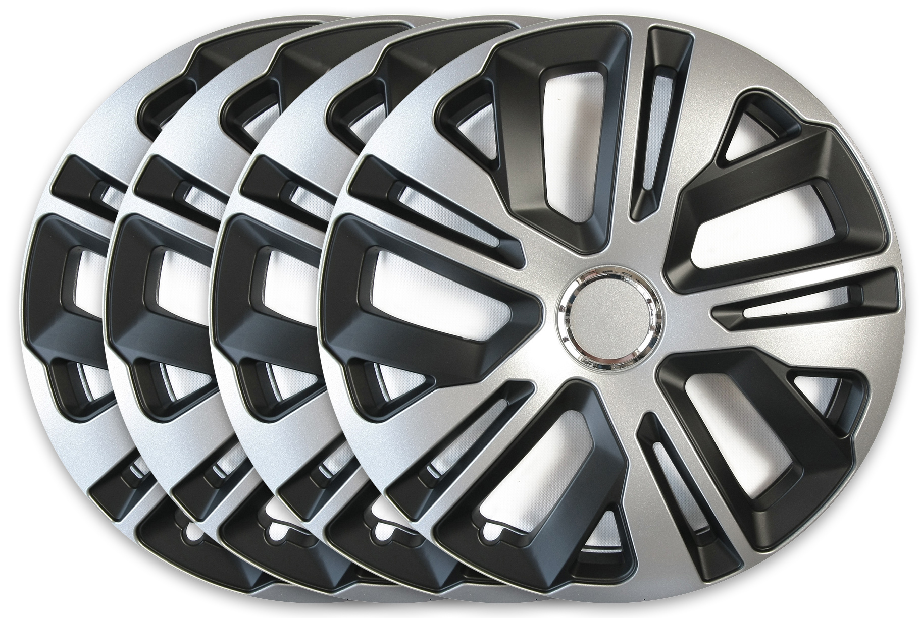 Komplet estetycznie wykonanych kołpaków samochodowych o oryginalnym i stylowym wzorze. Wykonane zostały z wytrzymałego tworzywa (ABS) dwuwarstwowo lakierowanego, co zmniejsza możliwość odprysków oraz ułatwia utrzymanie kołpaków w czystości.