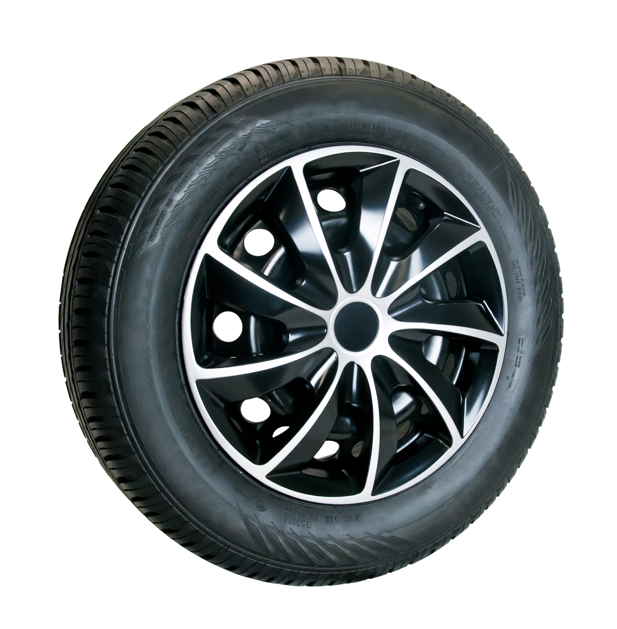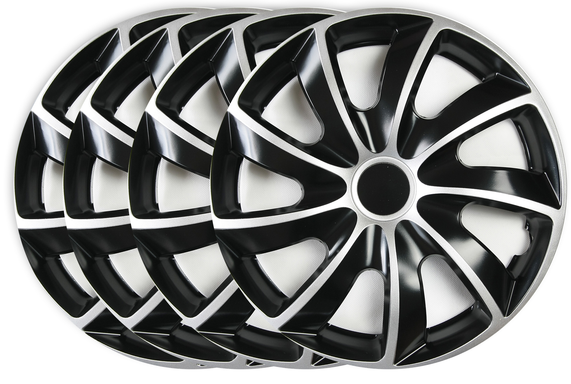 Komplet estetycznie wykonanych kołpaków samochodowych o oryginalnym i stylowym wzorze. Wykonane zostały z wytrzymałego tworzywa (ABS) dwuwarstwowo lakierowanego, co zmniejsza możliwość odprysków oraz ułatwia utrzymanie kołpaków w czystości.