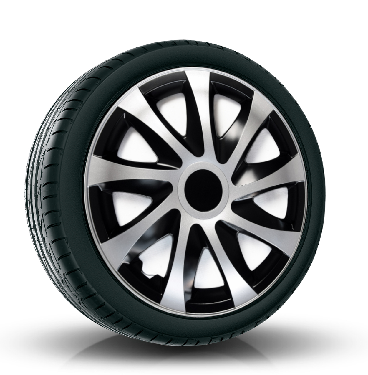 Komplet estetycznie wykonanych kołpaków samochodowych o oryginalnym i stylowym wzorze. Wykonane zostały z wytrzymałego tworzywa (ABS) dwuwarstwowo lakierowanego, co zmniejsza możliwość odprysków oraz ułatwia utrzymanie kołpaków w czystości.
