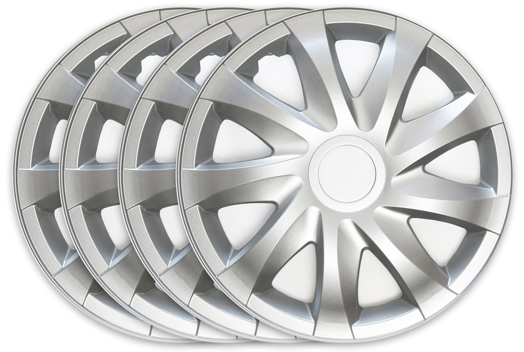 Komplet estetycznie wykonanych kołpaków samochodowych o oryginalnym i stylowym wzorze. Wykonane zostały z wytrzymałego tworzywa (ABS) dwuwarstwowo lakierowanego, co zmniejsza możliwość odprysków oraz ułatwia utrzymanie kołpaków w czystości.