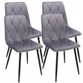 Krzesła tapicerowane są welurem, a po wewnętrznej stronie pikowane regularnymi przeszyciami w romby. Wysokie i smukłe nóżki w czarnym kolorze wyglądają bardzo szykownie oraz gwarantują idealną stabilność.
