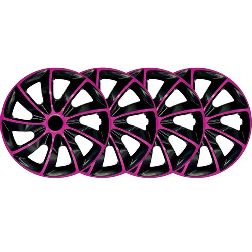 Odkryj stylowe kołpaki QUAD BICOLOR PINK BLACK, idealny sposób na nadanie Twojemu samochodowi wyjątkowego charakteru! Nasz komplet czterech uniwersalnych kołpaków samochodowych o średnicy 14 cali to nie tylko estetyka, ale również funkcjonalność, której potrzebujesz w codziennym użytkowaniu swojego pojazdu.