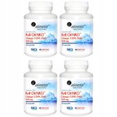 4x Krill Oil NKO 500 mg Aliness to suplement diety pochodzący z oleju z kryla pozyskiwanego w opatentowanej technologii kanadyjskiej NKO. Oferuje on najwyższą zawartość tłuszczu - 98%, co zapewnia dużą dawkę łatwo przyswajalnych kwasów omega-3.