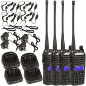 ✔️ Kompletny zestaw zawierający 4 radiotelefony, zasilacz, stację ładującą i słuchawkę.