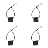 Zestaw (4 sztuki) samoprzylepnych uchwytów kablowych , stosowany do porządkowania i mocowania przewodów, kabli lub rurek na różnych powierzchniach.