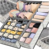 Ten wysokiej jakości zestaw 4 organizerów na bieliznę, skarpety i ubrania charakteryzuje się nie tylko praktycznym i stabilnym designem, ale także wyjątkowymi funkcjami. Posiada różne rozmiary z licznymi przegródkami – od 24 po 6 – które idealnie organizują bieliznę, skarpety, krawaty czy akcesoria, zapewniając najwyższy poziom uporządkowania i łatwości dostępu.