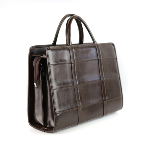 Przedstawiamy 515 Damski kuferek duży pasy - brąz KEMER, idealne połączenie elegancji i funkcjonalności, stworzone z myślą o kobietach, które cenią sobie klasę oraz styl. Wymiary (37x27x12 cm) gwarantują wystarczającą przestrzeń, by pomieścić wszystkie niezbędne akcesoria do pracy czy w podróży, jak format A4, notebook czy tablet.