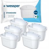 Wysokiej klasy wkłady filtrujące Wessper AquaMax STANDARD z 95g mieszanki filtrującej skutecznie eliminują chlor, metale ciężkie oraz redukują twardość wody. Trzystopniowy system filtracji z węglem aktywnym impregnowanym srebrem, żywicą jonowymienną i siatką filtrującą zapewnia wodę o doskonałym smaku i zapachu, wolną od kamienia i metalicznego posmaku.