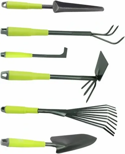 Ten najwyższej jakości, 6-częściowy zestaw narzędzi ogrodniczych to niezbędny element wyposażenia dla każdego miłośnika ogrodnictwa. Komplet składa się z podwójnej motyki, małego kultywatora, skrobaka do fug, rącznych grabi, kielni do kwiatów, oferujących precyzyjność i efektywność w każdym zadaniu ogrodowym.