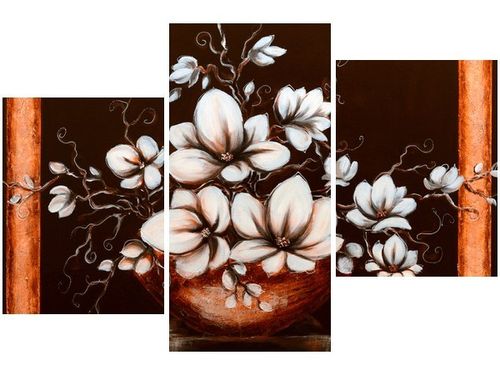 4. Obrazy nie posiadają klasycznej zewnętrznej ramy. Boki obrazu są zadrukowane i płótno jest montowane w taki sposób, że stanowi naturalną kontynuację motywu obrazu. Obrazy wieloelementowe, dzięki temu tworzą jedną całość. Szerokość zadrukowanego boku wynosi tyle samo ile grubość drewnianej ramy czyli 1,6cm.