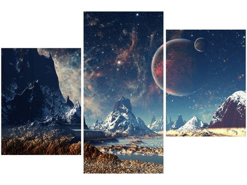 4. Obrazy nie posiadają klasycznej zewnętrznej ramy. Boki obrazu są zadrukowane i płótno jest montowane w taki sposób, że stanowi naturalną kontynuację motywu obrazu. Obrazy wieloelementowe, dzięki temu tworzą jedną całość. Szerokość zadrukowanego boku wynosi tyle samo ile grubość drewnianej ramy czyli 1,6cm.