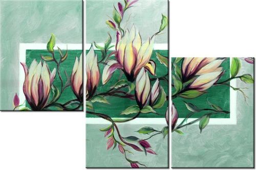 4. Obrazy nie posiadają klasycznej zewnętrznej ramy. Boki obrazu są zadrukowane i płótno jest montowane w taki sposób, że stanowi naturalną kontynuację motywu obrazu. Obrazy wieloelementowe, dzięki temu tworzą jedną całość. Szerokość zadrukowanego boku wynosi tyle samo ile grubość drewnianej ramy czyli 1,6cm.