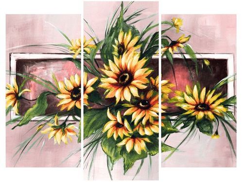 4. Obrazy nie posiadają klasycznej zewnętrznej ramy. Boki obrazu są zadrukowane i płótno jest montowane w taki sposób, że stanowi naturalną kontynuację motywu obrazu. Obrazy wieloelementowe, dzięki temu tworzą jedną całość. Szerokość zadrukowanego boku wynosi tyle samo ile grubość drewnianej ramy czyli 1,6cm.