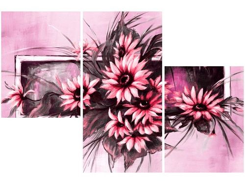 4. Obrazy nie posiadają klasycznej zewnętrznej ramy. Boki obrazu są zadrukowane i płótno jest montowane w taki sposób, że stanowi naturalną kontynuację motywu obrazu. Obrazy wieloelementowe, dzięki temu tworzą jedną całość. Szerokość zadrukowanego boku wynosi tyle samo ile grubość drewnianej ramy czyli 1,6cm.