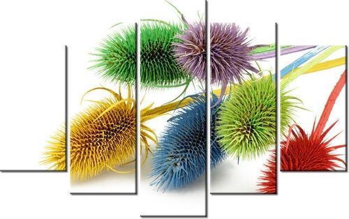 4. Obrazy nie posiadają klasycznej zewnętrznej ramy. Boki obrazu są zadrukowane i płótno jest montowane w taki sposób, że stanowi naturalną kontynuację motywu obrazu. Obrazy wieloelementowe, dzięki temu tworzą jedną całość. Szerokość zadrukowanego boku wynosi tyle samo ile grubość drewnianej ramy czyli 1,6cm.
