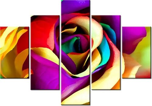 4. Obrazy nie posiadają klasycznej zewnętrznej ramy. Boki obrazu są zadrukowane i płótno jest montowane w taki sposób, że stanowi naturalną kontynuację motywu obrazu. Obrazy wieloelementowe, dzięki temu tworzą jedną całość. Szerokość zadrukowanego boku wynosi tyle samo ile grubość drewnianej ramy czyli 1,6cm.