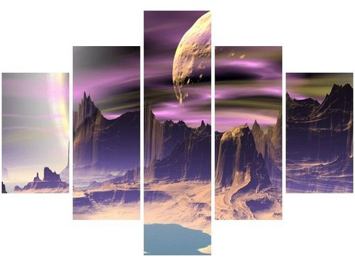 4. Obrazy nie posiadają klasycznej zewnętrznej ramy. Boki obrazu są zadrukowane i płótno jest montowane w taki sposób, że stanowi naturalną kontynuację motywu obrazu. Obrazy wieloelementowe, dzięki temu tworzą jedną całość. Szerokość zadrukowanego boku wynosi tyle samo ile grubość drewnianej ramy czyli 1,6cm.