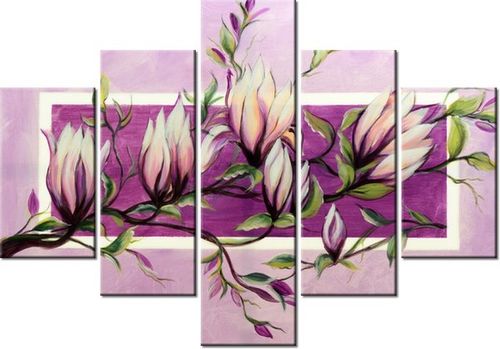 4. Obrazy nie posiadają klasycznej zewnętrznej ramy. Boki obrazu są zadrukowane i płótno jest montowane w taki sposób, że stanowi naturalną kontynuację motywu obrazu. Obrazy wieloelementowe, dzięki temu tworzą jedną całość. Szerokość zadrukowanego boku wynosi tyle samo ile grubość drewnianej ramy czyli 1,6cm.