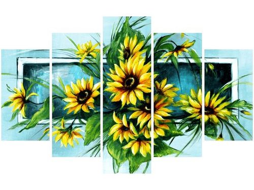 4. Obrazy nie posiadają klasycznej zewnętrznej ramy. Boki obrazu są zadrukowane i płótno jest montowane w taki sposób, że stanowi naturalną kontynuację motywu obrazu. Obrazy wieloelementowe, dzięki temu tworzą jedną całość. Szerokość zadrukowanego boku wynosi tyle samo ile grubość drewnianej ramy czyli 1,6cm.
