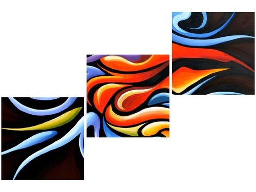 4. Obrazy nie posiadają klasycznej zewnętrznej ramy. Boki obrazu są zadrukowane i płótno jest montowane w taki sposób, że stanowi naturalną kontynuację motywu obrazu. Obrazy wieloelementowe, dzięki temu tworzą jedną całość. Szerokość zadrukowanego boku wynosi tyle samo ile grubość drewnianej ramy czyli 1,6cm.