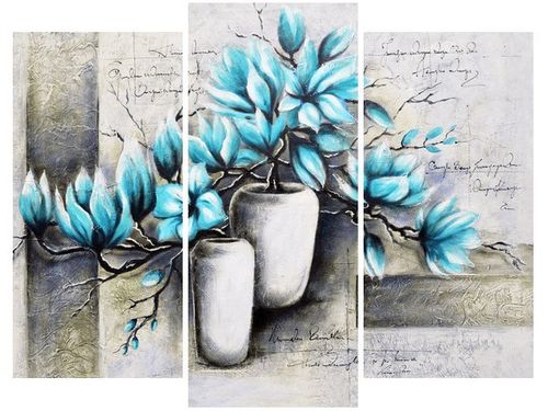 4. Obrazy nie posiadają klasycznej zewnętrznej ramy. Boki obrazu są zadrukowane i płótno jest montowane w taki sposób, że stanowi naturalną kontynuację motywu obrazu. Obrazy wieloelementowe, dzięki temu tworzą jedną całość. Szerokość zadrukowanego boku wynosi tyle samo ile grubość drewnianej ramy czyli 1,6cm.