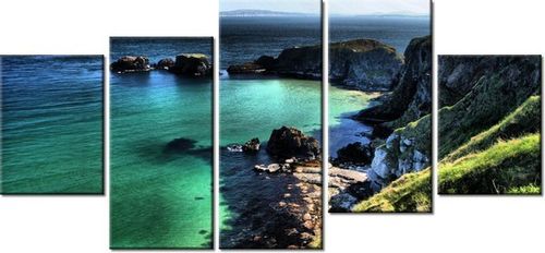 4. Obrazy nie posiadają klasycznej zewnętrznej ramy. Boki obrazu są zadrukowane i płótno jest montowane w taki sposób, że stanowi naturalną kontynuację motywu obrazu. Obrazy wieloelementowe, dzięki temu tworzą jedną całość. Szerokość zadrukowanego boku wynosi tyle samo ile grubość drewnianej ramy czyli 1,6cm.
