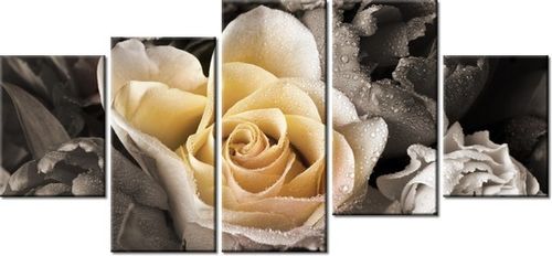4. Obrazy nie posiadają klasycznej zewnętrznej ramy. Boki obrazu są zadrukowane i płótno jest montowane w taki sposób, że stanowi naturalną kontynuację motywu obrazu. Obrazy wieloelementowe, dzięki temu tworzą jedną całość. Szerokość zadrukowanego boku wynosi tyle samo ile grubość drewnianej ramy czyli 1,6cm.
