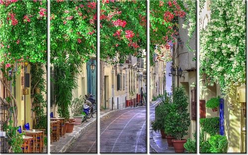 4. Obrazy nie posiadają klasycznej zewnętrznej ramy. Boki obrazu są zadrukowane i płótno jest montowane w taki sposób, że stanowi naturalną kontynuację motywu obrazu. Obrazy wieloelementowe, dzięki temu tworzą jedną całość. Szerokość zadrukowanego boku wynosi tyle samo ile grubość drewnianej ramy czyli 1,6cm.