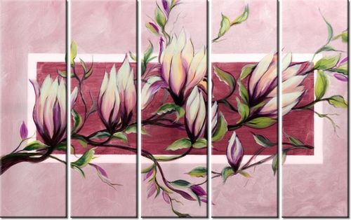 4. Obrazy nie posiadają klasycznej zewnętrznej ramy. Boki obrazu są zadrukowane i płótno jest montowane w taki sposób, że stanowi naturalną kontynuację motywu obrazu. Obrazy wieloelementowe, dzięki temu tworzą jedną całość. Szerokość zadrukowanego boku wynosi tyle samo ile grubość drewnianej ramy czyli 1,6cm.