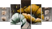 4. Obrazy nie posiadają klasycznej zewnętrznej ramy. Boki obrazu są zadrukowane i płótno jest montowane w taki sposób, że stanowi naturalną kontynuację motywu obrazu. Obrazy wieloelementowe, dzięki temu tworzą jedną całość. Szerokość zadrukowanego boku wynosi tyle samo ile grubość drewnianej ramy czyli 1,6cm.