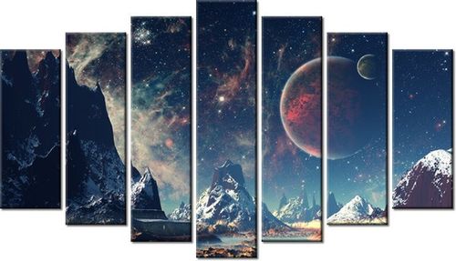 4. Obrazy nie posiadają klasycznej zewnętrznej ramy. Boki obrazu są zadrukowane i płótno jest montowane w taki sposób, że stanowi naturalną kontynuację motywu obrazu. Obrazy wieloelementowe, dzięki temu tworzą jedną całość. Szerokość zadrukowanego boku wynosi tyle samo ile grubość drewnianej ramy czyli 1,6cm.