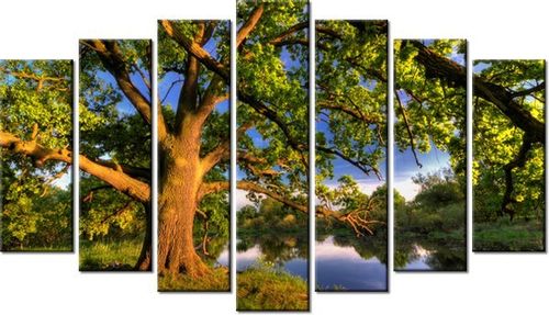 4. Obrazy nie posiadają klasycznej zewnętrznej ramy. Boki obrazu są zadrukowane i płótno jest montowane w taki sposób, że stanowi naturalną kontynuację motywu obrazu. Obrazy wieloelementowe, dzięki temu tworzą jedną całość. Szerokość zadrukowanego boku wynosi tyle samo ile grubość drewnianej ramy czyli 1,6cm.