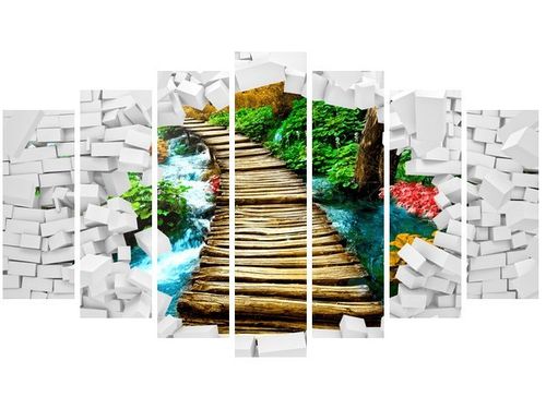 4. Obrazy nie posiadają klasycznej zewnętrznej ramy. Boki obrazu są zadrukowane i płótno jest montowane w taki sposób, że stanowi naturalną kontynuację motywu obrazu. Obrazy wieloelementowe, dzięki temu tworzą jedną całość. Szerokość zadrukowanego boku wynosi tyle samo ile grubość drewnianej ramy czyli 1,6cm.