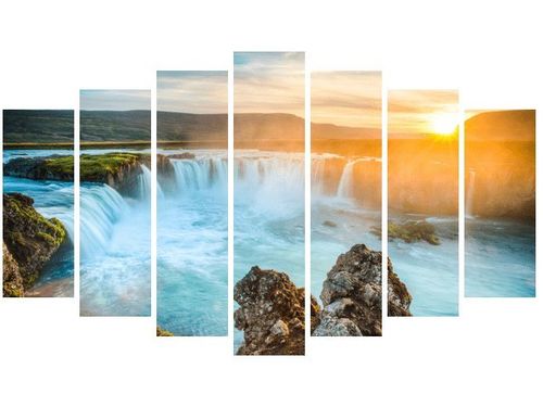 4. Obrazy nie posiadają klasycznej zewnętrznej ramy. Boki obrazu są zadrukowane i płótno jest montowane w taki sposób, że stanowi naturalną kontynuację motywu obrazu. Obrazy wieloelementowe, dzięki temu tworzą jedną całość. Szerokość zadrukowanego boku wynosi tyle samo ile grubość drewnianej ramy czyli 1,6cm.