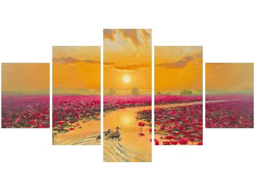 4. Obrazy nie posiadają klasycznej zewnętrznej ramy. Boki obrazu są zadrukowane i płótno jest montowane w taki sposób, że stanowi naturalną kontynuację motywu obrazu. Obrazy wieloelementowe, dzięki temu tworzą jedną całość. Szerokość zadrukowanego boku wynosi tyle samo ile grubość drewnianej ramy czyli 1,6cm.