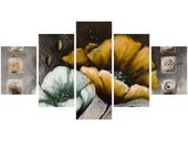 4. Obrazy nie posiadają klasycznej zewnętrznej ramy. Boki obrazu są zadrukowane i płótno jest montowane w taki sposób, że stanowi naturalną kontynuację motywu obrazu. Obrazy wieloelementowe, dzięki temu tworzą jedną całość. Szerokość zadrukowanego boku wynosi tyle samo ile grubość drewnianej ramy czyli 1,6cm.