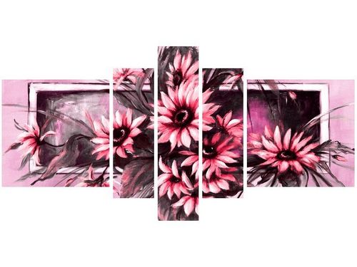 4. Obrazy nie posiadają klasycznej zewnętrznej ramy. Boki obrazu są zadrukowane i płótno jest montowane w taki sposób, że stanowi naturalną kontynuację motywu obrazu. Obrazy wieloelementowe, dzięki temu tworzą jedną całość. Szerokość zadrukowanego boku wynosi tyle samo ile grubość drewnianej ramy czyli 1,6cm.