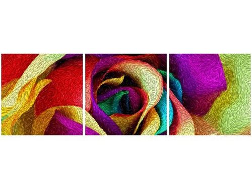 4. Obrazy nie posiadają klasycznej zewnętrznej ramy. Boki obrazu są zadrukowane i płótno jest montowane w taki sposób, że stanowi naturalną kontynuację motywu obrazu. Obrazy wieloelementowe, dzięki temu tworzą jedną całość. Szerokość zadrukowanego boku wynosi tyle samo ile grubość drewnianej ramy czyli 1,6cm.