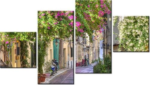 4. Obrazy nie posiadają klasycznej zewnętrznej ramy. Boki obrazu są zadrukowane i płótno jest montowane w taki sposób, że stanowi naturalną kontynuację motywu obrazu. Obrazy wieloelementowe, dzięki temu tworzą jedną całość. Szerokość zadrukowanego boku wynosi tyle samo ile grubość drewnianej ramy czyli 1,6cm.