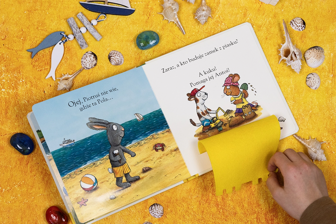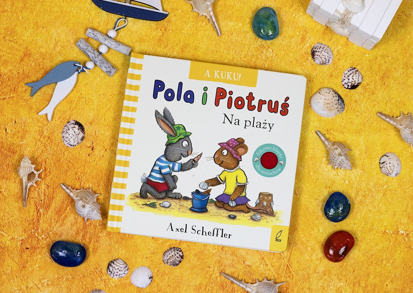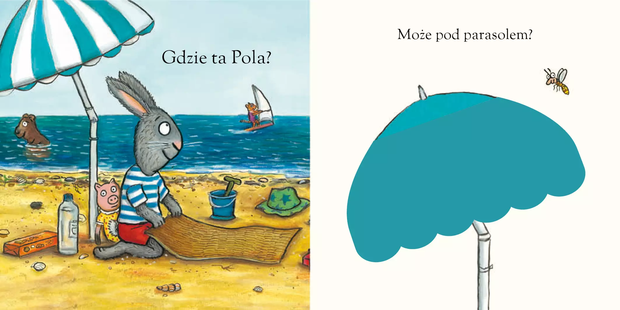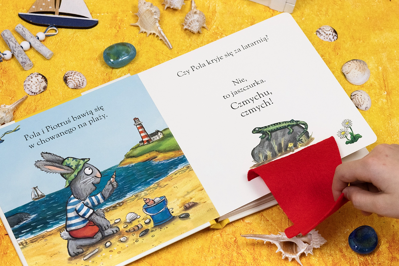 Nowa odsłona znanej i lubianej serii książeczek o sympatycznych Poli i Piotrusiu. Tym razem przyjaciele bawią się w chowanego. Pola próbuje znaleźć Piotrusia. Kolorowe filcowe klapki i fantastyczne ilustracje zachęcą maluchy do przyłączenia się do zabawy i odkryciu, gdzie schował się Piotruś. Powtarzanie za rodzicem wyrazów dźwiękonaśladowczych to zarówno wspaniała zabawa, jak i trening mowy.
