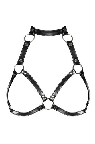 Uprząż A740 to bieliźniany dodatek, który pozwoli Ci przekroczyć granice codzienności i wejść w świat odważnych przyjemności. Otwarty biustonosz wykonany ze skórzanych paseczków otula piersi w sposób wyzywający i elegancki, a regulowany choker podkreśla linię szyi. Metalowe kółeczko poniżej dekoltu spaja całość i skupia uwagę na tym, co najważniejsze. Regulacja z tyłu zapewnia idealne dopasowanie do sylwetki, a srebrne detale nadają charakteru i nieco zmysłowej surowości.