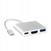 Ten wysokiej jakości adapter HUB 3w1 USB-C umożliwia łatwe połączenie różnych urządzeń w jednym miejscu. Pozwala na podłączenie zewnętrznego dysku, urządzenia USB, a także umożliwia przesyłanie obrazu na telewizor lub monitor za pośrednictwem portu HDMI.