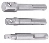 Zestaw adapterów Falon-Tech FT003 to praktyczne akcesorium, które umożliwia stosowanie nasadek 1/4", 3/8" i 1/2" we współpracy z wiertarkami i młotowiertarkami wyposażonymi w uchwyt SDS-Plus. Adaptery wykonane są z wytrzymałej stali chromowo-wanadowej (CrV), co gwarantuje ich odporność na zużycie i długą żywotność nawet przy intensywnym użytkowaniu.