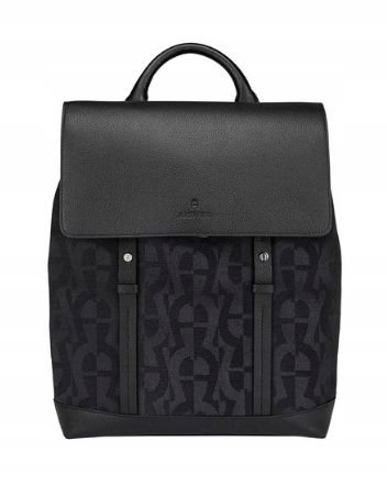 Plecak wykonany jest ze skóry cielęcej i tkaniny z monogramem.