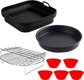 Zwiększona Efektywność: Zestaw zawiera silikonową formę o średnicy 20 cm, blachę do pizzy o średnicy 20,3 cm, ruszty grillowe o średnicy 20 cm z 5 szpikulcami oraz 5 silikonowych foremek do muffinów. Pozwala to na zwiększenie efektywności cyrkulacji powietrza, co ułatwia przygotowanie różnych dań.