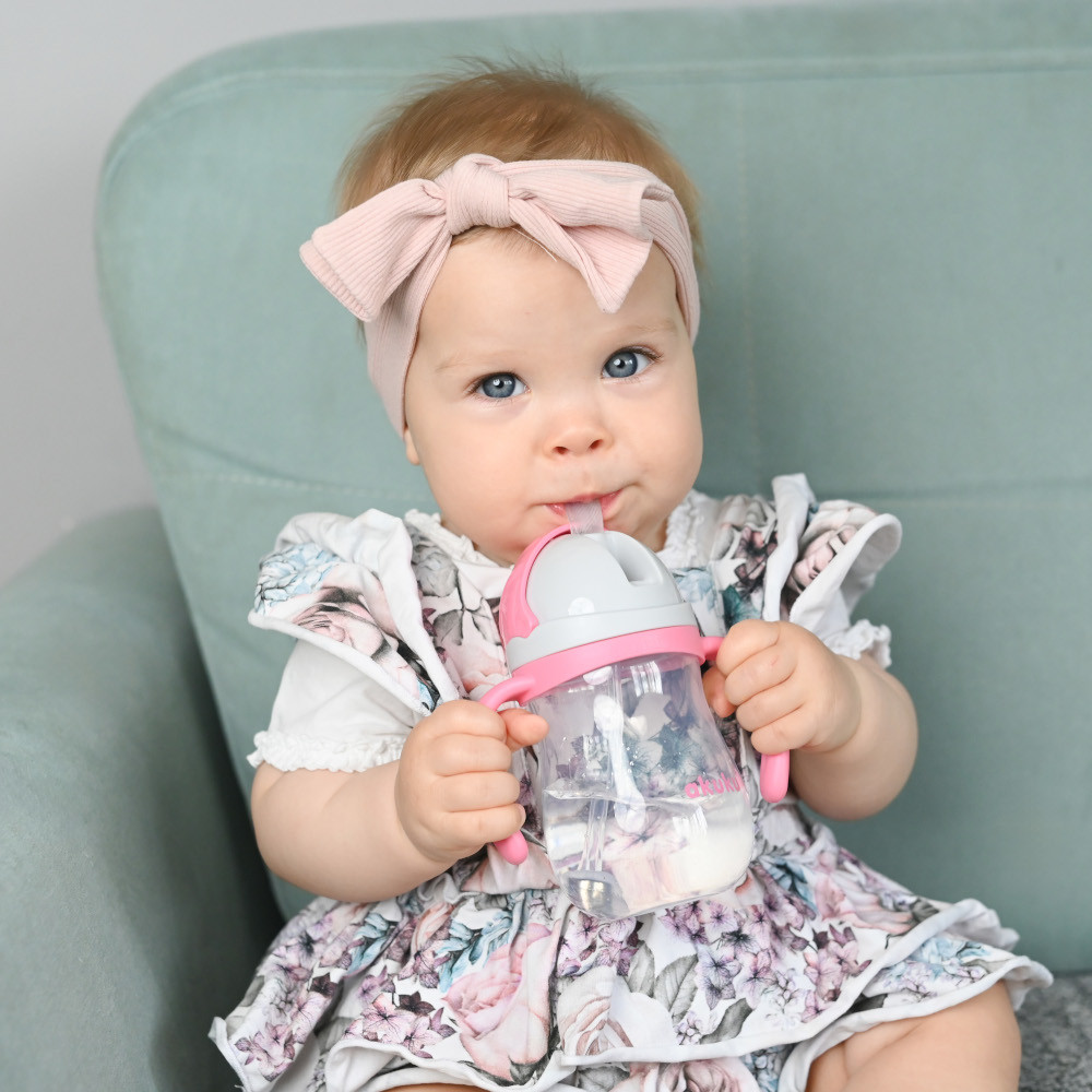 Ważne: W ustniku znajduje się dwukierunkowy silikonowy zaworek-niekapek. Przed pierwszym użyciem należy kilkakrotnie ścisnąć ustnik, aby dziecko mogło się z niego bezproblemowo napić